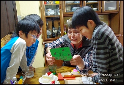 little house*■双子とお兄ちゃんの暮らし■ のんびりゆっくり気ままなフォト日記・・・*PAGE | 4 5 6 7 8 9 10 11 12 13 14 | ADMIN | WRITE 2011.03.01 Tue 23:05:13 ■☆・。・ おばあちゃんのお誕生日・。・☆■2/27は、(私の母)おばあちゃんの63回目の誕生日でした。 子供たちが大好きなkおばあちゃん。 ●そら&k● ●ゆう&k● ●たか&k● (私の母)kおばあちゃんは、子供たちが生まれた時から… このお家でずっと一緒に暮らしています。 だから、子供たちにとってもkおばあちゃんは… とても大切な大切な存在なんです。 大好きなkおばあちゃんの為に・・・ 子供たちは… お手紙を書いたり、プレゼントを考えたり・・・ 子供たちなりの優しい気持ちがいっぱい詰まった 優しい贈り物を送りました…。 ●喜んでくれたかな?● …。あっ。 嬉しそうだ。(^-^) ●あはは…● ...子供たちの誤字脱字いっぱいの可愛いお手紙に 大ウケしてくれたkおばあちゃんでした。(笑) 63歳分のロウソクを立てて… ●いい事いっぱいありますように…フ~ッ● いくつになってもこうして家族みんなでお誕生日を お祝いできるのっていいものです。 大好きなイチゴのケーキをパクパクと・・・。 ●ゆうちゃん● ●そらちゃん● ●ペロッ…と、ゆうちゃん● ●お兄ちゃんも・・・● あ~…最近、すっかりお兄ちゃんです。 最後は、双子のツーショット!!! ●おしまい!● チャン!チャン! (camera = pentax k-m ) *………………………* ■ 最後まで読んでくれて、ありがとう ■ ポチッ ![]() ↑ ↑ ↑ 日記がおもしろかったらポチッと押して頂けると嬉しいです* ■ ■ コメントはこちらへどうぞ ■ ■ ↓ ↓ ↓ PR |